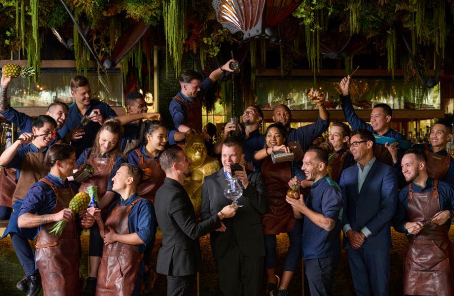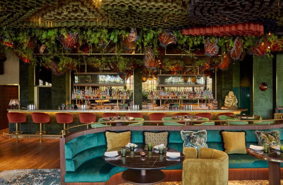The Dubai outpost of Madrid restaurant Amazónico is inspired, as the name suggests, by the countries of the Amazon, and also the combination of Mediterranean and Asian communities in those countries. The bar and lounge, occupying the ground floor, is a glamorous, jungle-themed space with stained glass butterflies suspended above the bar itself. If the decor doesn’t transport you to Latin America, then the tropical cocktails will, not only with their flavours but with their playful, inventive presentation. Take the Monkey Business, for example, served in mugs shaped like monkey heads. The drink itself contains Bulleit Bourbon, Cointreau, lemon, honey, ginger and banana. Like many drinks at Amazónico, there’s a no-ABV version too. The ground floor also features a sushi bar, with the main dining room on the floor above. It’s worth paying a visit to the rooftop too, with its own cocktail bar and unforgettable views.