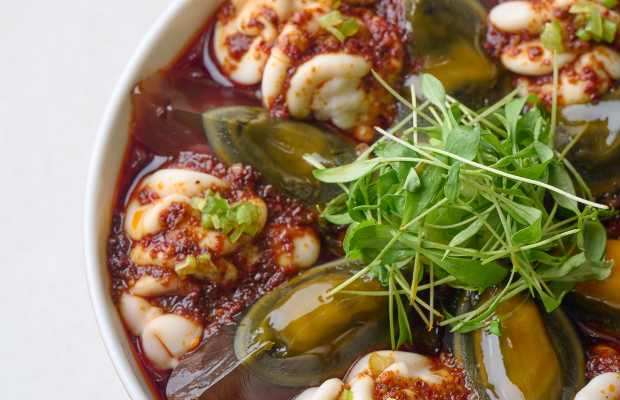 Culinary evolution: Never having worked in Chinese restaurants previously and with no formal training in the cuisine, Cheng has taught himself through rigorous study. He began experimenting with ingredients such as sea cucumber and fish maw, at Vea, located directly above Wing, but the dishes remained predominantly French. At Wing, these ingredients manifest in anything but traditional ways; think fresh and aged abalone presented in yin and yang form and baby pigeons roasted whole in a sticky sugarcane sauce.