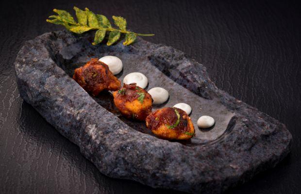 A glittering, chandelier-walled dining room inside the ITC Grand Chola hotel is the setting for Avartana’s modern renditions of Southern Indian cuisine courtesy of chef Ajit Bangera. There are multiple set tasting menus, each available in vegetarian – the seven-course ‘Maya’, nine-course ‘Bela’, 11-course ‘Jiaa’, and the 13-course ‘Anika’ or ‘Tara’. Each is a series of small bites, such as infused tomato rasam, asparagus and coconut stew or pan-fried cod. There are plenty of influences from molecular gastronomy, plus playful touches such as a miniature hammer to crack open the pannacotta ‘egg’ served in a bird’s nest.
