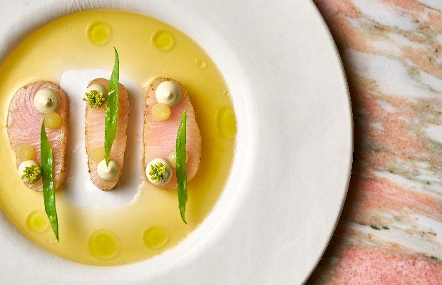 What’s the vibe like? It’s all about flowing lines and serene autumnal tones inside the André Fu-designed space in Hong Kong’s Central district. Tables are a white linen affair, but primary colour pop up via murals and eccentric patterned wallpapers to give the space unique character. Its style of service follows suit, offering classic, attentive hospitality while aptly avoiding any pretentiousness.