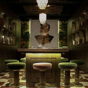Even before a sip has been taken, stepping into the Mirror Bar lounge is a transportive experience. Forest-green walls and emerald velvet furnishings are accented by deep wooden panels and hanging plants. There are cabinets of curiosity displaying miniature bonsai trees beneath a lofted skylight, all set around the bar's centrepiece – a full-size tree created by florist Róbert Bartolen. It all combines to give the impression of the surrealist fantasy of a Victorian-era natural scientist.