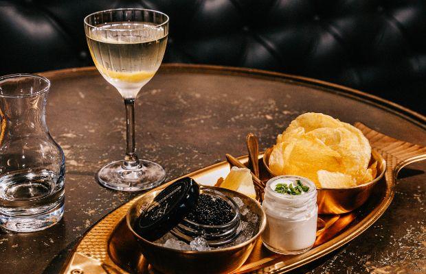 The cocktail menu matches the mood with a rich collection of French wines, ciders and spirits, and upscale bar snacks (think caviar and chips, marinated Manchego and olives, rillettes, and an array of tinned conservas). The highlight of the drinks programming is Bisous’s magnificent martini menu, which serves as a love letter to sometimes overlooked iterations like the alaska, gibson, martinez, and vesper, each made with subtle updates to help ferry the vintage drinks into the modern age with grace and elegance. The house Olivette, made with olive leaf-infused gin, vermouth, and saline solution, is a special diversion from the theme, as is the restrained list of house highballs, including one with persimmon liqueur and tonic, and another with armagnac and ginger.