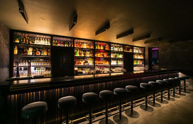 Retro-futuristic bar crafting neoclassic cocktails
