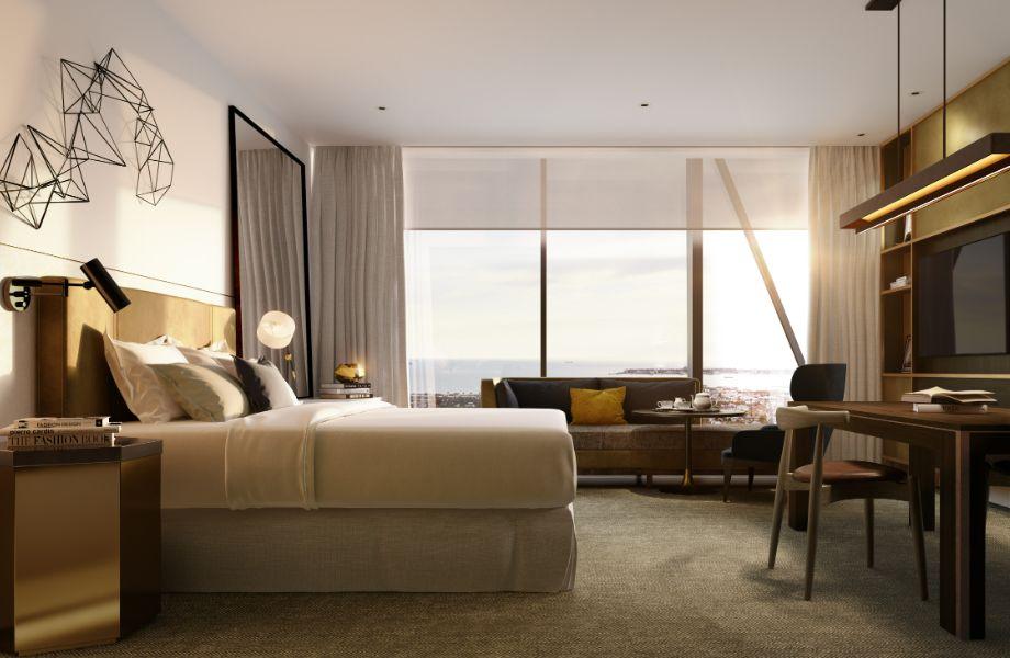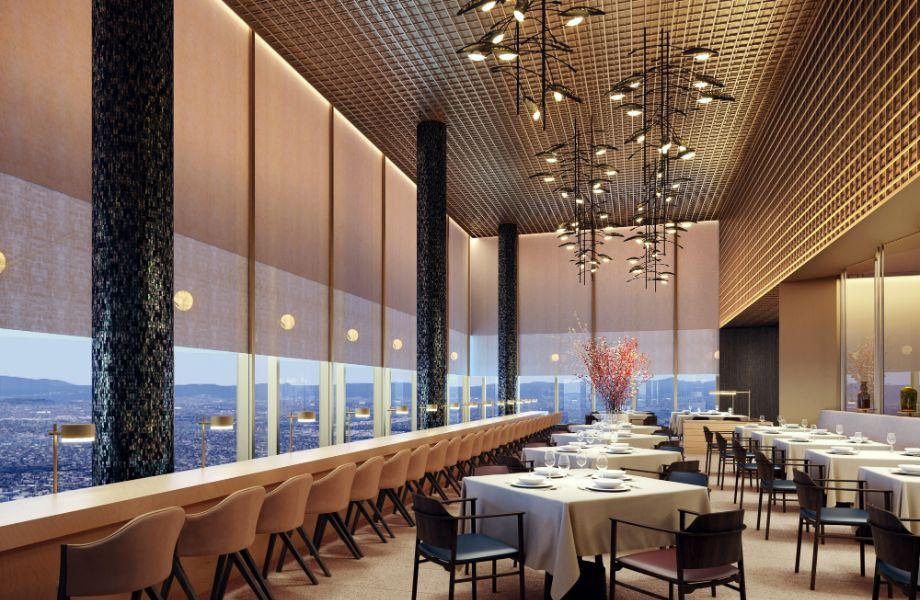 An emerald water installation, tinkling glass chandelier and curvaceous golden stairway act as your arrival committee in The Ritz-Carlton’s ground-floor lobby. That is before they sweep you up in an ear-popping, high-speed elevator to the 80th floor sky lobby, where you check in. From here, it’s black marble, tall ceilings, indigenous art and jaw-slackening cityscapes all the way. The hotel resides in the top 17 storeys of the uber-modern tower, set in Melbourne’s CBD. Interiors wise, the hotel delivers a visual tour of Melbourne — from the geometric Art Deco patterns and the gilded touches that reference the city’s gold rush, to the collection of First Nations and local art and contemporary local design in the form of lighting by Christopher Boots and The Flaming Beacon. It shouldn’t work, but it really does – and better yet, it channels a sense of calm throughout. Generously sized rooms are characterised by abundant light, gold accents, walnut and plush furnishings. Edged by triple-height glass, the inviting spa pool is a highlight of any stay. Meanwhile cinematic Atria uses the same glass trick to seemingly float its guests amid the landscape beyond. Low arm chairs and high-flying lighting bring added breadth to the sense of space, though don’t detract from the imaginative modern Australian food served up here. On the lofty 80th floor, intimate Cameo bar delivers a concise list of cocktails including some rare, antique spirits.