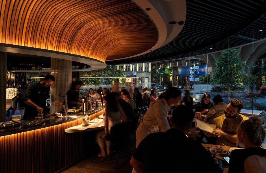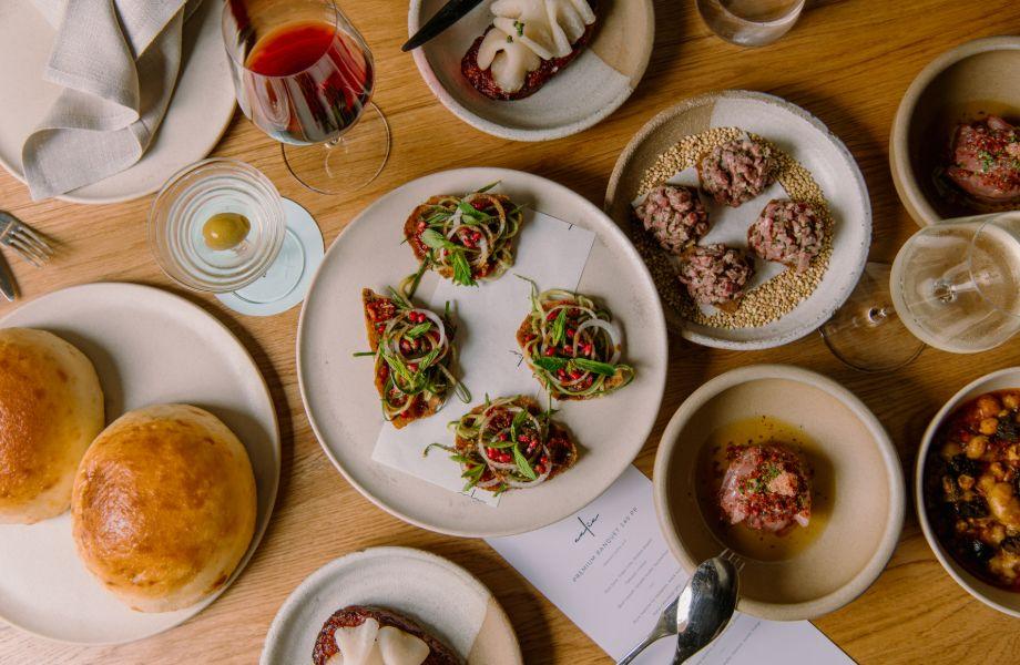 When Aalia opened in Sydney’s Central Business District (CBD), it’s striking design – natural textures, warm lighting and soaring wooden pillars – set the stage for a vibrant celebration of Middle Eastern dining. Executive chef Paul Farag’s attention to detail went as far as sending staff recordings of him pronouncing menu items to ensure tip-top authenticity when serving diners. The result? A menu that doesn’t compromise on taste, showcasing the full diversity of Arabinan cuisine. If you’re not au fait with Arabic dish names, helpful staff will unpack the expansive menu of snacks, mezze and larger sharing plates. Or opt for the set banquet menu for a curated journey along the full length of the Red Sea coastline. Dishes might include Egyptian ful medames, given an opulent rethink with bone marrow and black walnut; quail skewers with molokhia (a type of stew made with jute mallow leaves) and barberries; and smoked buffalo labneh with beetroot molasses. The wine list includes bottles from Syria, Jordan and Morocco, and an express menu (available noon-2:30pm and 5:30-6:30pm) offers a three-course meal for A$40.