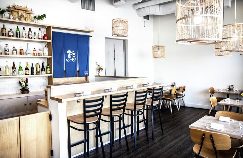 A white chandelier and rows of sake bottles are the most decorative items in this minimal yet intimate dining room. Masayoshi Baba – formerly of celebrated sushi restaurant Tojo’s – demonstrates considerable technical ability and a real eye for presentation in experimental omakase menus that change daily. Unctuous grilled unagi (freshwater eel) served in crystalline broth sits alongside courgette flower stuffed with sticky rice and sashimi so colourful and precise it almost looks animated. Combining the casual air of a neighbourhood favourite with the ceremony of a fine diner, Masayoshi is an excellent introduction to omakase eating for first timers.