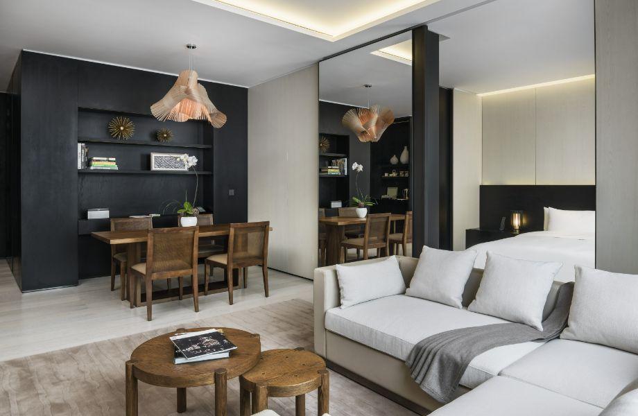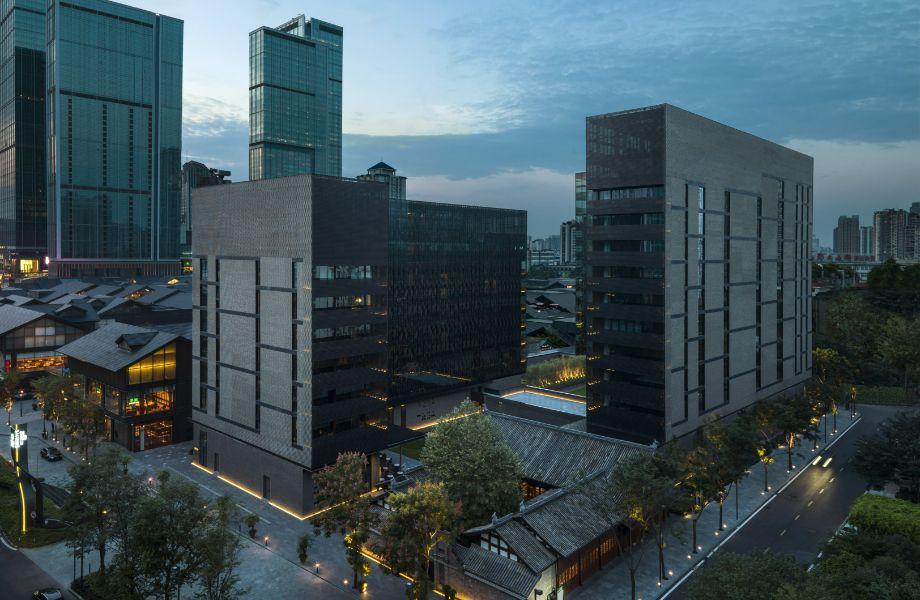 The monolithic, black mirror twin towers of this Taikoo Li district hotel belie its multi-faceted character. Behind those monochromatic giants sits a luxury stay that melds the expected opulence of modern Chinese hospitality with a generous respect for heritage. Even the entrance is a juxtaposition: beyond a restored Quin Dynasty archway and (faux) historic courtyard sit the two contemporary towers housing high-tech rooms, urban oasis spa, subterranean swimming pool and three of four hotel restaurants. Minimalist, sharply curated studios, suites and a dazzling penthouse share views of Chengdu’s skyscrapers. All are vast and light-filled, pairing urban edge with subtle nods to Chinese design. Most come equipped with additional living space. In a city expectant of plush dining offerings, this hotel is a standout: The Temple Café utilises garden pickings to serve a fresh, vibrant all-day bistro menu; the sultry Tivano plates up a homage to Italy’s cookbook under a vine-covered cabana terrace, and at Jing, Jazz Age-style cocktails arrive on bar that has in-built DJ decks. The real beauty, though, is the wood-built Mi Xun Teahouse, a high-flying Sichuan restaurant that serves precision-plated, plant-based dishes inspired by a centuries-old monastery kitchen nearby.