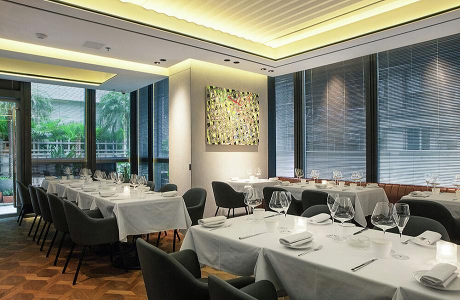 Australian chef Shane Osborn serves an à la carte of seasonal, modern European dishes using the best British, French and Japanese produce. Ample vegetarian options include Japanese fruit tomato, soft-poached Taiyouran egg or homemade lemon ricotta cappelletti, while meat eaters can enjoy roasted Pyrenean lamb rack or steamed kinmedai fish. The discreet dining room is adorned with contemporary art and there is a terrace that mimics an English tropical garden with lush greenery and the restaurant’s own herb garden.