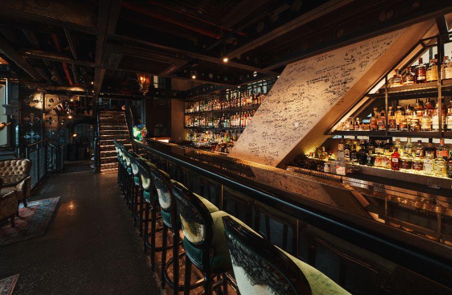 Choose your own adventure at this steampunk-style two-storeyed bar. Large tables overlooking the buzzing open kitchen make for convivial, boozy meals on the expansive ground floor. Upstairs, you’ll find sweeping views of Shenzhen’s skyline through riveted windows, high‑backed armchairs and a huge whisky display, which includes autographed bottles of Highland malts and rare Japanese spirits. There are plenty of guest shifts too: check Obsidian’s socials for a line‑up of boozy crossovers led by Asia’s top bartenders. The in-house cocktail menu reflects the bar’s creative and collaborative spirit, take the Copper Room Tonic which blends gin, salted apple shrub and absinthe, served as a highball. Come hungry: you won’t want to miss the Boston lobster risotto and succulent pan-fried lamb chops.