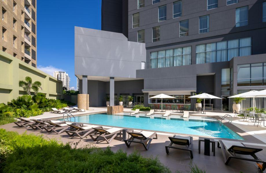 Barranquilla, Colombia’s vibrant Caribbean seaport, is a lively crossroads for business and leisure travellers, and this sleek Marriott hotel is ready for both. Known as the "Golden Gate of Colombia", Barranquilla comes alive during its iconic Carnival, one of the world’s largest, when the city sizzles with dancing, rhythmic Cumbia music, dazzling costumes and boundless joy. At the hotel, authentic Colombian touches shine through, from the coffee rituals at Meira Café to the warm-hued rooms offering floor-length views of thriving parkland outside. Guests can take things up a notch at the exclusive M Club, with perks such as free breakfast, evening canapés, and cocktails. Amenities include a cutting-edge fitness centre, next-gen meeting spaces, and in-room LED TVs featuring curated TED content.