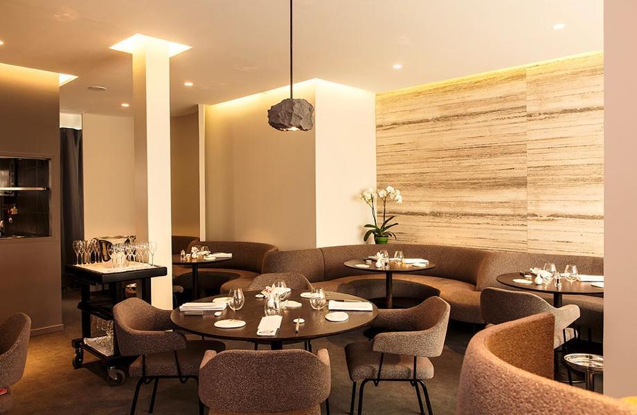 Slide into the sleek monochrome interiors of Alan Geaam, a few blocks south of the Arc de Triomphe, for a tour of this self-taught chef’s earthy approach to high-end cuisine. This is cooking with precision, but also with passion: langoustine is baked with blood orange and sumac then smoked in mint; cured trout is wrapped in a sheet of sweet potato and served with scorched clementine and za’atar; crunchy cocoa beans come with halva and muscovado ice cream.