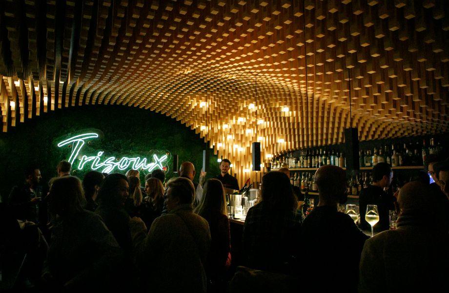 A jaw-dropping ceiling installation designed by Martino Hutz Architecture – made from more than 6,000 custom designed spruce rods that hang individually – curves and flows at Trisoux bar in Munich’s Glockenbachviertel neighbourhood, serving as a visual harbinger of the dramatic showmanship that follows behind the bar. This penchant for high design extends throughout the central lounge, an area that was configured using crowd simulation technology that optimises the use of space, ensuring that the young and enthusiastic clientele always enjoy their visit. The cocktail list is short and to the point, allowing the amiable bartenders to share their enthusiasm for creative flavour combinations with those curious to learn more about the backstories of the drinks. The best time to visit is when night falls and part of the ceiling lights up, casting a soft glow over the cosmopolitan space.
