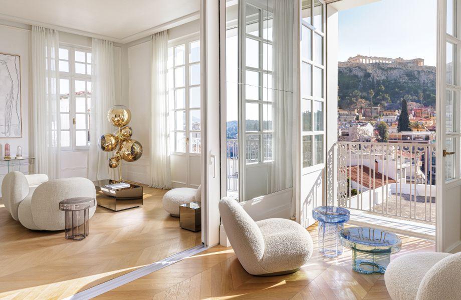The Dolli isn’t quite as old as its neighbour, the Acropolis, but after beginning life in 1925 as a private mansion, it remains a historic part of Athens' architecture. In contrast to its historic surroundings, the 46 rooms, suites and apartments feel slick and modern, with immaculate white interiors, custom minimalist furnishings and glossy marble bathrooms. It’s hard to go far in Athens without seeing a memento of ancient civilisation, but The Dolli further facilitates these sights: dine at the rooftop restaurant for a view of Hadrian’s Library, the pool’s looks out onto the Acropolis and Parthenon at its peak, or Junior Suites to wake up to wraparound city views from the Acropolis Luxury Junior Suites. For an aperitif, stop by art-strewn Le Salon for surounded by original Picassos and 18th-century antiques.