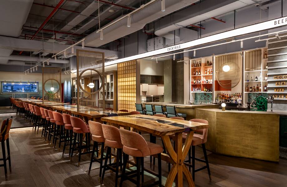 Velvet chairs in a rust hue, flowing shapes, soft blue and green shapes on the walls that gently suggest rolling hills… the southernmost tip of India’s mainland, Kanniyakumari (or Cape Comorin as it was known to British colonisers) is famed for its sunrises and these are what inform this all-day spot’s restful interiors. Buckle up for a journey throughout the flavours of the Indian subcontinent, from the fiery fish curries of the south to the comforting dhals of the north’s epic mountains. The extensive menu is separated into small, large and extra-large plates, all of which work well for sharing and are generously flavoured. Tandoori red snapper sings alongside a refreshing mint salsa, while the malai kofta’s buttery tomato sauce is unbelievably comforting. There is also a whiskey-focused cocktail list confusingly termed ‘make it count’. After a few ‘pickled Jacks’ (Jack Daniel's, pickling spices, pomegranate shrub and mole bitters) we’re unsure if you’ll feel like counting anything…