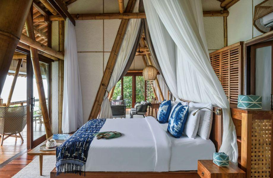 Riffing on modern castaway vibes, this paradisical patch of sustainable luxury on Indonesia’s Anambas Islands has captured the attention of jetsetters and barefoot explorers since its launch in 2018. Set in seclusion some 160 miles from Singapore, the far-flung resort spans six tropical islands spliced by three protected lagoons. Arrival via seaplane – or private yacht, if inclined – plants guests in a jungle-clad haven catering to adventurers and sun-seekers alike. The 36 inviting villas, safari-like suites and lodges (some with private pools) are simpatico to nature; find them lining the sand, sitting loftily within the verdant canopy or languishing over water. Singaporean design whizz Sim Boon Yang oversaw the seven-year build – using traditional Indonesian technique so as to protect the island’s ecosystem – which includes private island Elang, sleeping 14 and available for exclusive use. Think restorative spaces characterised by crisp linens, thoughtful objets d’arts and warm reclaimed teak and bamboo. A world away from the quotidian, an infinity pool, 13 beaches and holistic spa are made for languid days, while the big blue, mangrove and forested interior sates active travellers. On the food front, refined global flavours harness the excellence of island produce.