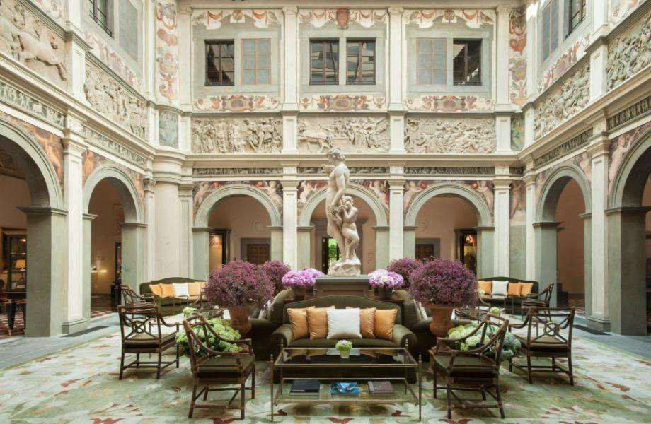 Florence’s largest private garden is the home of this Four Seasons property that touches all the bases of historic Italian hospitality. Inside the beautifully renovated 15th-century Medici Palace, it's hard not to be wooed by its interiors that pull from the rich tapestry of historic Italian design motifs. The 116 bedrooms within the property feel interwoven into the Florentine DNA: original frescoes, ceiling paintings and ornate furniture hammer home a true sense of place. For daytime activities, the concierge desk offers a range of alluring pastimes, including highly curated tours of the local area, an activity the Four Seasons group does so well. The hotel’s main Michelin-starred restaurant, Il Palagio, juxtaposes the historic building with a contemporary offering that reimagines Italian classics into exemplary plates fit for fine dining, with a serious collection of vintages to match. For a more romantic option, the building’s tiny renovated chapel, decorated solely with original artwork from its founding era, can be exclusively booked for an intimate evening dinner for two.