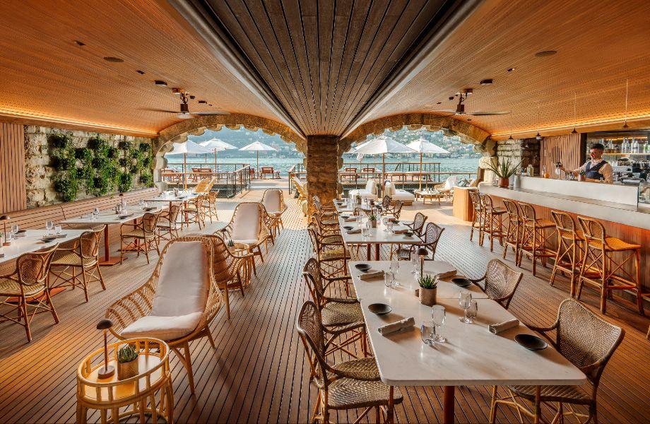 Setting the benchmark for lavish lakeside lodgings is Mandarin Oriental Lago di Como. On perhaps the most iconic lake in Italy (known for its appeal to privacy-seeking A-listers), it’s a stately scene that could have been drawn verbatim from the pages of a fin-de-siècle novel. Climbing the banks and shrouded by a woodland that yields to pristine gardens, the Italianate-style hotel resides within an old 19th-century villa flanked by annexes that form part of the whole. Within the property, Mandarin Oriental’s signature brush stroke are in evidence. Honouring the locale, legacy elegance is at the heart of interiors – all dark-wood flooring and beams, huge fireplaces, decorative ceilings and elaborate chandeliers. But it’s married with modern touches such as the plush velvet sofas and hushed colourways, and Asian undertones including chinoiserie wallpaper. Incredible suites and villas look lovingly upon the grounds and glistening water beyond. A Roman bath-style enclave forms one the region’s largest spas, and even if you’ve never logged on to Instagram, it’s likely you’ll have seen the pontoon-like pool that seemingly floats on the lake. Completing it is a fine-dining restaurant with a lakefront terrace by Massimilliano Blasone, who combines classic Italian cuisine with clever Japanese inflections.