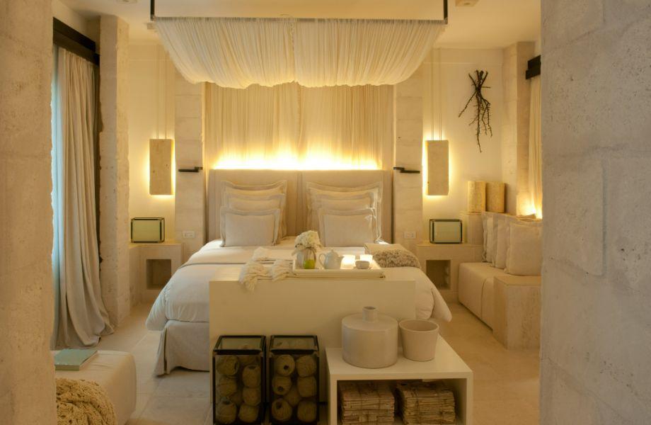 Don’t be fooled by first appearances at this hotel. What might appear to be a small collection of little Italian hamlets is actually the complex of one of Italy’s finest hotels. Borgo Egnazia was built from scratch and opened its doors for the first time in 2010, but you’d be forgiven for thinking otherwise, thanks to its bell-towered church, central piazza and surrounding fortifications. Step into the hotel, however, and the telltale signs that this is a contemporary luxe hospitality experience are readily apparent. Four pools, a Roman-inspired thermal bath, spa and a multitude of al fresco bars and restaurants: this is a state-of-the-art hospitality complex built to measure. Accommodation within the hotel ranges from ‘Casette’ stone cottages and 28 luxurious villas to romantic, minimalist rooms located inside the main La Corte building, each sporting lavender-scented contemporary interiors of clean lines and slick stone. At night, the limestone buildings and piazza come to life under the warming glow of candlelight. A spot of dinner at Due Camini, the hotel’s flagship Italian restaurant, is as magical as one can hope for. Guests also have access to two private beaches – one sandy and one shingled – via a shuttle service from the main hotel.