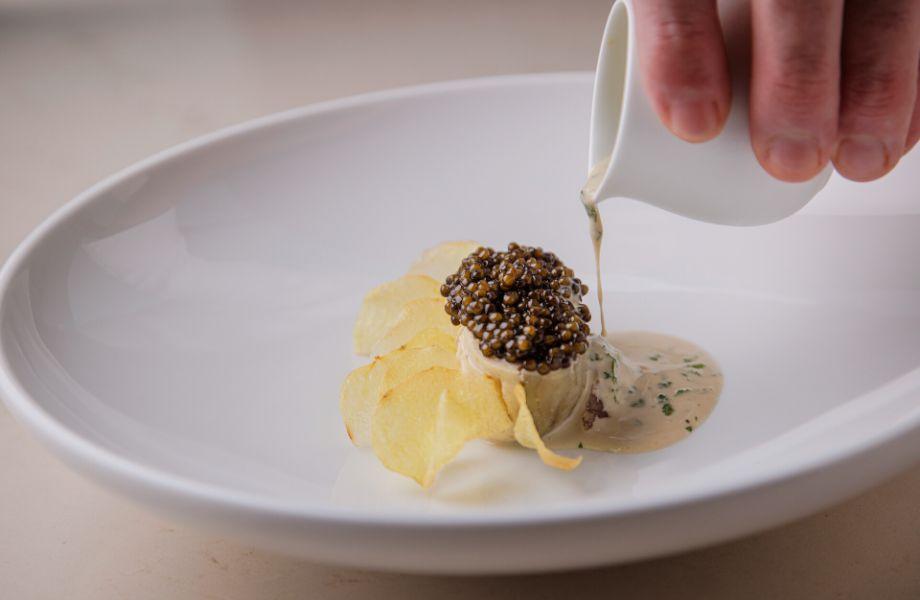 Perched atop the glassy edifice of the Four Seasons Tokyo at Otemachi, elegant and contemporary French restaurant Est strives to reconstruct the concept of luxury through a lens of sustainability. French-born chef Guillaume Bracaval is all about transparency in his eco-conscious approach to fine dining – degustation menus offered at lunch and dinner are anchored to the rhythms of the changing seasons, with 95 per cent of ingredients sourced from Japan’s small-scale fishers, hunters, foragers and artisan producers. Furthermore, as a material representation of Chef Bracaval's ethos, the kitchen remains visible to diners through a glass wall. Entering via a peachily lit corridor, diners encounter a light, airy dining room. Dishes are delightfully presented: an artichoke and tofu dumpling arrives coddled under glittering balls of caviar, while slivers of pearly kurosoi rock fish are cloaked in a zangy green fennel and dill oil sauce. Desserts are heavenly creations: pastry chef Michele Abbatemarco makes use of aromatic ingredients and rich colours to craft glossy tarte tatins laid with three varieties of Nagano prefecture apples.