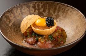 Located just a minute’s walk from Akasaka station, Shirosaka draws its clientele from far and wide, a steady stream of kaiseki-cuisine-seekers looking to escape to its tranquil garden setting and take a spot either at the handsome nine-seater cherrywood counter or in the elegant six-person private room. At the helm is perfectionist Hideki Li, a former executive chef of NYC’s UN ambassador residence and restaurateur extraordinaire. The techniques Li and his tight brigade employ may be precise, but the atmosphere is relaxed, a fact only helped by the accessible wine and sake lists. Painstaking attention to detail and the high quality of the raw produce shines through in dishes such as quail’s egg yolk and trout caviar, served within a spherical rice cracker atop a tangled rainbow of sautéed vegetables; ebi-soba, noodle slivers tossed with prawns; and a sensational, seaweed-seasoned abalone risotto.