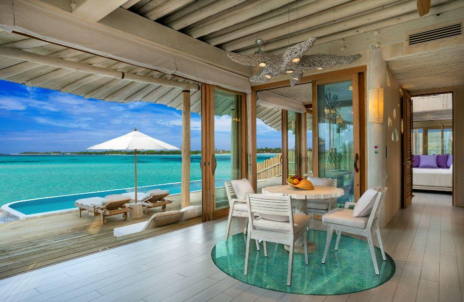 Upon arrival at Soneva Fushi, expect the pressures of the outside world to quickly melt away – as well as the confiscation of your footwear. Since rising to prominence under the leadership of industry titan Sonu Shivdasani, the resort has been the chief purveyor of the ‘no shoes, no news’ philosophy, forcing its guests to surrender to the tranquillity and beauty of the Maldivian surrounds – with great success. The private island is home to 72 separate villas, but you’d be easily forgiven for thinking you’re the atoll’s sole resident during your stay. Privacy is everything, so much so that it pioneered the now-everpresent Maldivian mainstay of outdoor bathrooms. Despite its isolation, Fushi delivers on all of the amenities, from Balinese-inspired spa complexes to numerous pools and tennis courts. This extends to its food and drink offering, with its main restaurant featuring rotating chefs from establishments regularly featured in The World’s 50 Best Restaurants annual ranking. Previous alumni include Tim Raue from his eponymous restaurant in Berlin and Nick Bril from The Jane in Antwerp.
