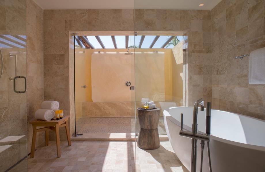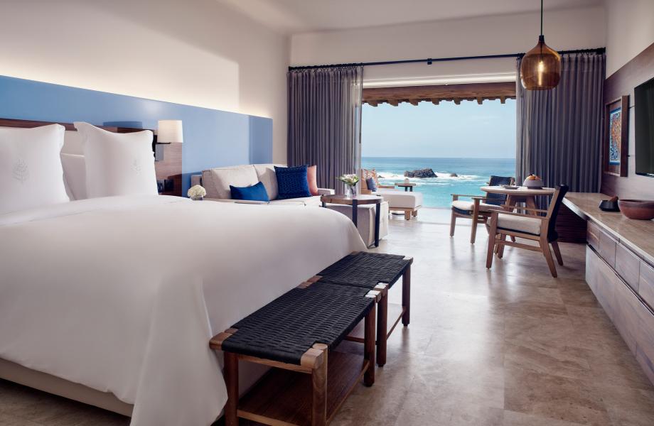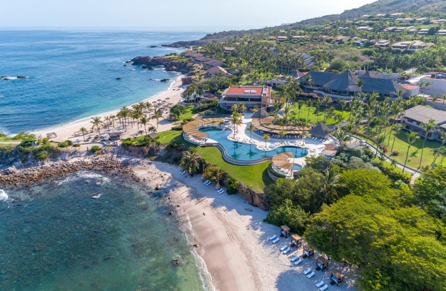 The high level of service at Four Seasons Punta Mita is the stuff of legend. For example, marquis services at the remarkable infinity pool include a sunglass doctor to tune guests’ shades along with ‘amphibious waiters’ in wetsuits who hold a silver tray aloft to deliver drinks to guests in the water. The hospitality begins at arrival with welcome drinks and cold towels. During the golf cart ride to one of the 139 red tile roofed casitas, guests catch sight of the tranquil private beach. All the rooms offer spectacular views, which are best enjoyed on the standard private terraces, preferably in the plunge pool. The rest of the campus features a cornucopia of activities for families and couples, including Huichol workshops, mezcal tastings and 17 tennis courts. Guests also receive exclusive access to the Jack Nicklaus designed golf courses Punta Mita Bahia and Punta Mita Pacifico. The latter 18 is renowned for Tail of the Whale; playable only at the low tide, the hole is billed as ‘the world’s only natural island green.’ The storied green features a dedicated lounge, one of ten restaurants and bars, including an outpost from flag favorite Richard Sandoval.
