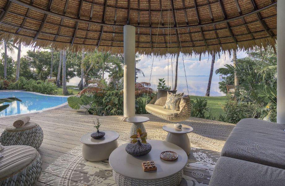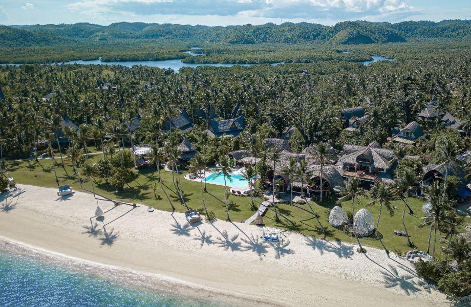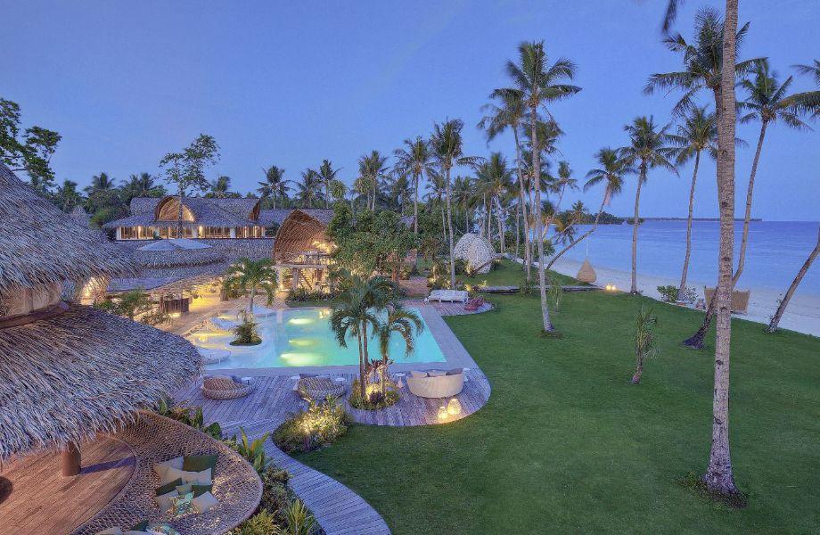 Setting the bar for barefoot luxury since 2012, Nay Palad Hideaway is on the southeastern tip of the island of Siargao. While there are more than 7000 islands in the Philippine archipelago, this one is special. Aside from its golden beaches and wildlife-heavy mangrove forests, it's home to the Cloud 9 barreling wave, a surfer’s nirvana. Following a devastating typhoon in 2021, architect Daniel Pouzet worked with local craftsmen to rebuild the all-inclusive resort in his signature organic style. Ten double-height villas line the sand bay, each with pitched thatch roofs and two bedrooms – a master and an attic room – with hand-carved wooden furniture and four-poster beds, as well as generous bathrooms and outdoor showers. The infinity pool anchors the retreat, surrounded by communal areas such as the Dansuli Lounge, which floats in the middle of water ponds, the ocean-view restaurant (the menu changes depending on what’s available from the farm) and a tree-top terrace. A frangipani-fragranced pathway takes guests to the nature-inspired spa, and don’t pass on the opportunity of the Jeepney, where you sit atop the vehicle in a giant hand-woven basket to explore the lush jungle.