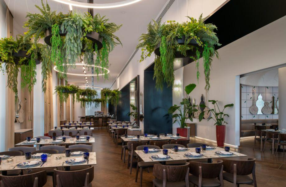 This is sushi master Masaharu Morimoto’s first outpost in the Middle East, and – in keeping with the culinary guru’s background – it takes inspiration from the city of Nara, with contemporary artworks by Hiroshi Senju on the walls, and temple-worthy rose-gold studded columns rising through the dining space. Pick from the 16-seat sushi bar or more conventional table seating – or opt for a private dining room hidden behind opulent mirror doors. Morimoto devotees will opt for the omakase offering here: a multi-course menu that distills the essence of the master chef’s cuisine. Otherwise, an all-embracing a la carte menu delivers a casual experience that dances from Morimoto signatures, such as a self-titled oyster selection and lobster sushi rice risotto, to cross-culinary twists (think short rib temoura, Hamachi tacos and toro tartare). Ramen, yaki soba and ‘sushi and (wagyu) steak’ nights are also on offer. The cocktail selection is particularly inventive, melding unexpected Japanese flavours into ingenious tipples. Case in point? The Wagyu-infused bourbon manhattan.