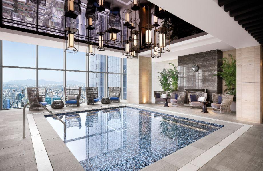 Though relatively new to Seoul’s hotel scene, Josun Palace, a Luxury Collection Hotel, Seoul Gangnam channels mid-century glamour, its richly-layered interiors paying homage to its predecessor The Chosun Hotel, South Korea’s first ever luxury grande dame. The allure of yesteryear is evident from the get-go – the reception areas a vision of marble, brass and glass, with Daniel Arsham’s enormous Blue Calcite Eroded Moses statue taking centre stage. Throughout, architectural studio Humbert & Poyet interweaves Art Deco and east Asian aesthetics, using bold geometric lines – on the ceilings, on the floors, on the walls – and bespoke furniture. Every chair and sofa is as pleasing as the next and do look up, the lights are beautiful. But it’s much more than a pretty face: the 1914 Lounge and Bar, a reference to the Chosun’s opening date, and the sky bar on the 36th floor are on every voguish cocktail drinker’s radar. So too The Great Hong Yuan for its Cantonese fine dining and Eatanic Garden for contemporary Korean. Though Emil Humbert and Christophe Poyet have decked out the 254 rooms and suites with a little less gilt, they’re glamorous nonetheless.