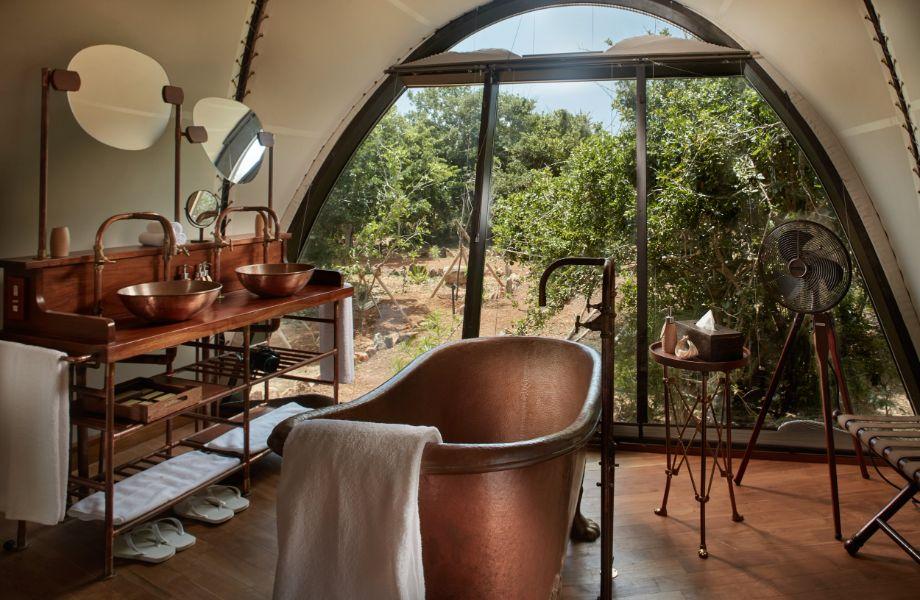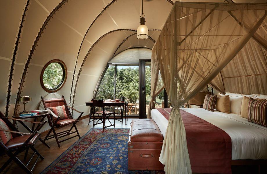 If you dream of waking up each morning surrounded by nothing but flora and fauna, Wild Coast Tented Lodge in Yala is the last word in nature immersion. The lodge sits on the edge of the biodiverse Yala National Park in southeastern Sri Lanka, at the intersection where jungle meets beach meets Indian Ocean. But this is no ordinary tented camp; rather, wildlife-loving guests sleep in one of 28 cocoons. These award-winning structures are nestled amongst the lush vegetation, with soaring ceilings and double height-glass and canvas facades for a jungle or ocean panorama. All feature copper bathtubs and king-size, four-poster beds – and some come with private plunge pools. There are watering holes nearby or the lodge’s informed guides will take you on a game drive to look for elephants, sloth bears and leopards. Either way, nothing beats twilight cocktails and canapés in the garden, followed by dinner at the extraordinary poolside restaurant and bar. Here you’ll perch on seating made from a combination of elephant dung and clay, beneath sustainable bamboo chandeliers, to feast on Sri Lankan flavours.