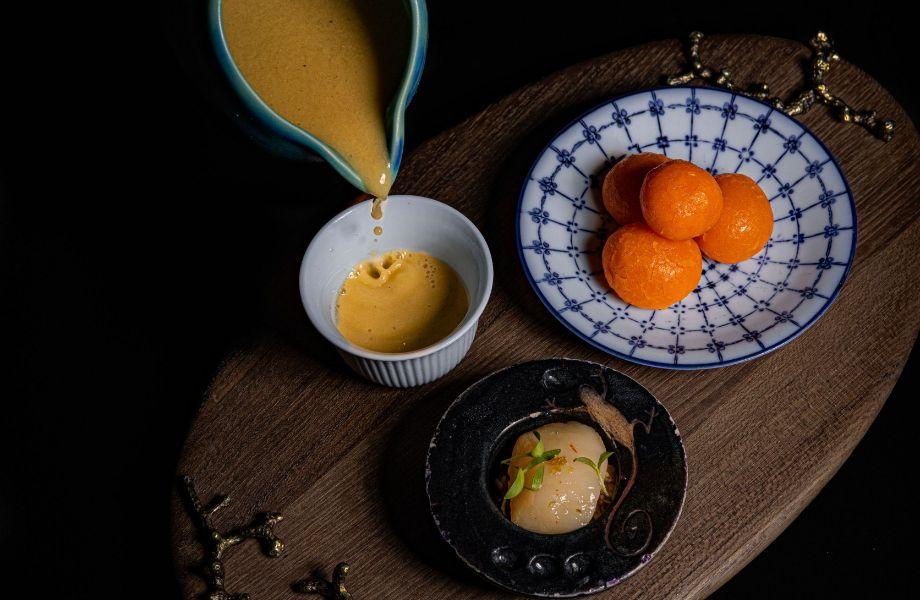 Acclaimed and amiable chef Thitid ‘Ton’ Tassanakajohn, returns to his traditional Thai roots at Nusara: an elevated 40-seater fitted with plush seating against stunning panoramic views. Naming the restaurant after his grandmother, who passed in 2020, Tassanakajohn pays homage to his heritage by putting a creative spin on ancient family recipes. The tasting menu consists of 12 courses, starting with delicate and innovative salads and finely sliced seafood, before moving onto flavourful curries, tiger prawns and river fish. Nusara, which is located near the Wat Pho temple on the bank of the Chao Phraya River, sits above another of chef Tassanakajohn’s ventures, Mayrai Pad Thai and Wine Bar. The dining room is comfortable and atmospheric, boasting a friendly and elegant interior. With one long central table seating only 10 guests at a time, Nusara presents an intimate dining experience that allows you to thoroughly focus on the marvellous food.
