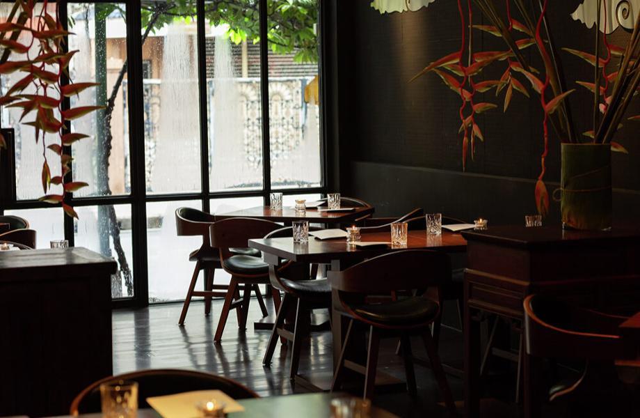Dishes on the 11-course tasting menu revolve around the techniques commonly used in traditional Thai cooking: grilling, steaming, stir-frying, charcoaling and fermentation. Expect courses of preserved krill with rachaburi pork jowl and Phuket pineapple and charcoal grilled wild slipper lobster with torch ginger, white turmeric and local fauna. On the pastry section, Arisara 'Paper' Chongphanitkul plates up masterful combinations, such as the tiger striped peanut with dark chocolate and vanilla grown in Chiang Rai in the country's north.