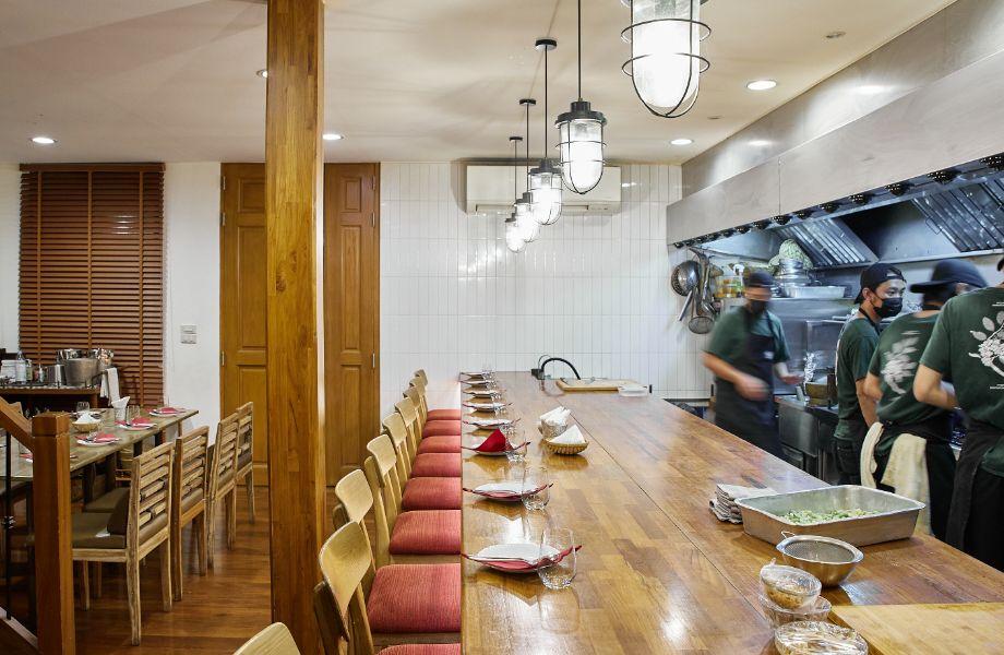 Blink and you’ll miss Samrub Samrub Thai: the restaurant is hidden behind a garage in the higgledy-piggledy backstreets of Bangkok’s Charoen Krung neighbourhood. After navigating your way to the dining room, diners are met by Thanyaporn “Mint” Jarukittikun, front-of-house extraordinaire and one half of the husband-and-wife team that heads up the restaurant. Her husband Prin Polsuk will be at the pass, preparing an incredible tasting menu that features hyper-seasonal, southern Thai favourites. The menus are ever-changing to accommodate the available local ingredients, and reflect the culinary traditions of different peoples across the nation. Diners can expect unique ingredients like bee larvae to be paired with classics like banana fritters. Dishes are drawn from culinary identities by the Srivaijaya Kingdom, Urak Lawoi people, or fishing villages in the Satun region. Although a few favourites remain: look out for the crowd favourite Regency Kapow, an aromatic basil, garlic and chilli stir fry splashed with pineapple brandy. This buzzy restaurant is a great pick for solo-diners and groups alike.