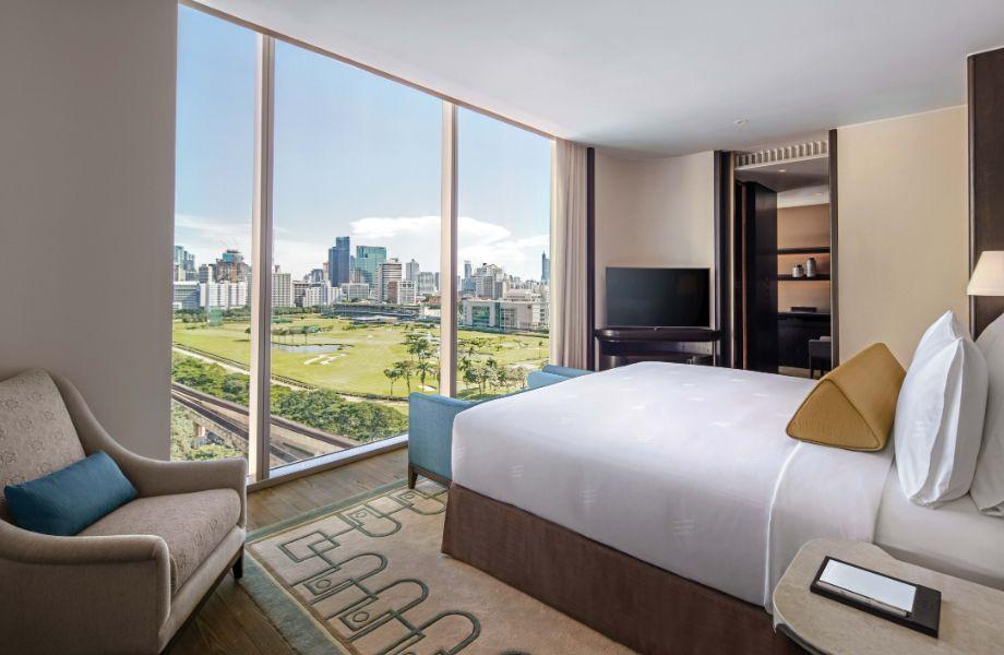 As Bangkok’s hotel scene soars, so too does the Waldorf Astoria. Floating like apartments in the sky, near Lumphini Park, rooms entice a well-heeled clientele of discerning nature. It sits at the height of luxury in a hyper-modern skyscraper designed to represent a blooming magnolia flower. This is the work of André Fu, a dab hand at curating visual stories with a sense of calm and wonder – he masterminded The Upper House, ranked No.4 on The World’s Best Hotels 2023. Designed with recurring nods to the area’s culture and Thailand on a larger scale – with a little lavish New York art deco thrown in for good measure – soaring ceilings, honed marble, silk, bronze accents and curving lines are all accounted for. The 16th-storey pool, with its dramatic architectural canopy and city views, is standout. Spacious bedrooms bring forth a restorative colour palette of warm wood, cream and soft blues, with gentle Thai motifs. Travel higher and things amp up to a more maximalist aesthetic across the dining options between the 55th and 57th floors. Bull & Bear is a New York-style steakhouse with masculine edge, while The Loft is the kind of bar that could easily have been concocted – and indeed, frequented – by F. Scott Fitzgerald.
