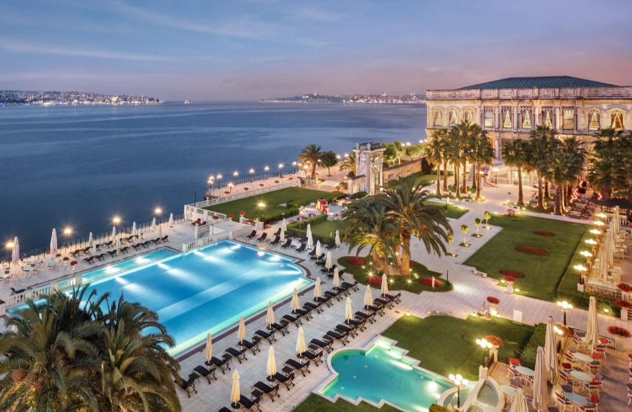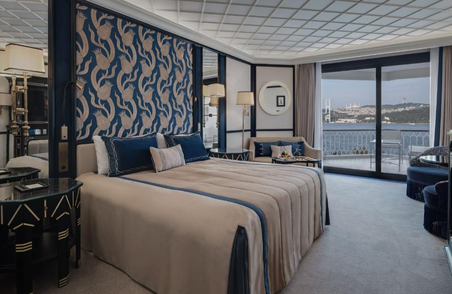 Ciragan Palace Kempinski allows you to live like an Ottoman Sultan, almost literally. Constructed in the mid-19th century as a palace for Sultan Abdulaziz, this marble landmark on the banks of the Bosphorus now caters to cosmopolitan travelers. One can even arrive the traditional way by boat to the compound’s private dock; a private helipad and a drive are also options. Regardless of vehicle, guests are welcomed by a brigade of staff and escorted through the tall palms, manicured lawns and rare botanicals. The palace sits atop a grand staircase, lording over these grounds and the river itself. Remodeled in 2023 by architect Mustafa Toner, the interiors feature modern elements but keep the focus on Istanbuls’s regal roots. Maroons, royal blue and grey marbles – a nod to traditional hammams – garnish the 317 rooms and suites. Amenities are handled by renowned Turkish pharmacist Atelier Rebul. Fine dining is available at Akdeniz by Esra Muslu, a destination for Mediterranean cuisine. Several more casual outlets allow the opportunity to take in the sunny gardens and indulge in some local culture, replete with locals wagering on backgammon and smoking hookahs.