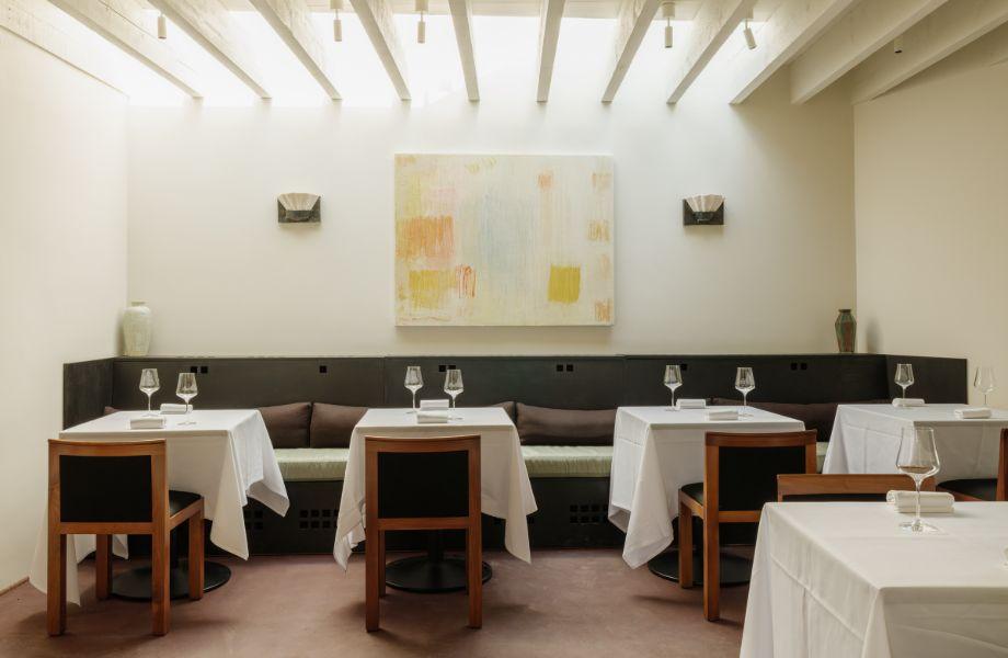 From the outside, Bruton looks like your standard picture-perfect village in England’s rural West Country. But recent years have seen it transform into a hub for creatives and food lovers. Until mid-2024, Osip was attached to boutique hotel Number One Bruton in an understated building on the village’s high street. In August, it consciously uncoupled from the hotel and reopened five minutes down the road in larger, white-washed premises, reducing the distance of its farm-to-table offering from a short drive to a short stroll. The new location manages to be simultaneously cosy and spacious, reflecting chef Merlin Labron-Johnson’s typically understated style. On arrival, guests can enjoy a drink – such as barrel-aged Osip cider or a vivid green apple and sorrel juice – and the first selection of snacks in the bar area, before moving through to the dining room. The focus here is undoubtedly the calm and collected open kitchen, with huge windows offering a glorious view of the rolling Somerset countryside, where much of the produce comes from. With no menu, you’re in the hands of Labron-Johnson and the professional yet relaxed team. As the weather and seasons are ever-changing, so too do the dishes, but expect courses such as an aerated courgette soup with gooseberry and crab served with a kohlrabi and lobster shiso roll, and churro with meadowsweet ice cream, blackberries and marigold.