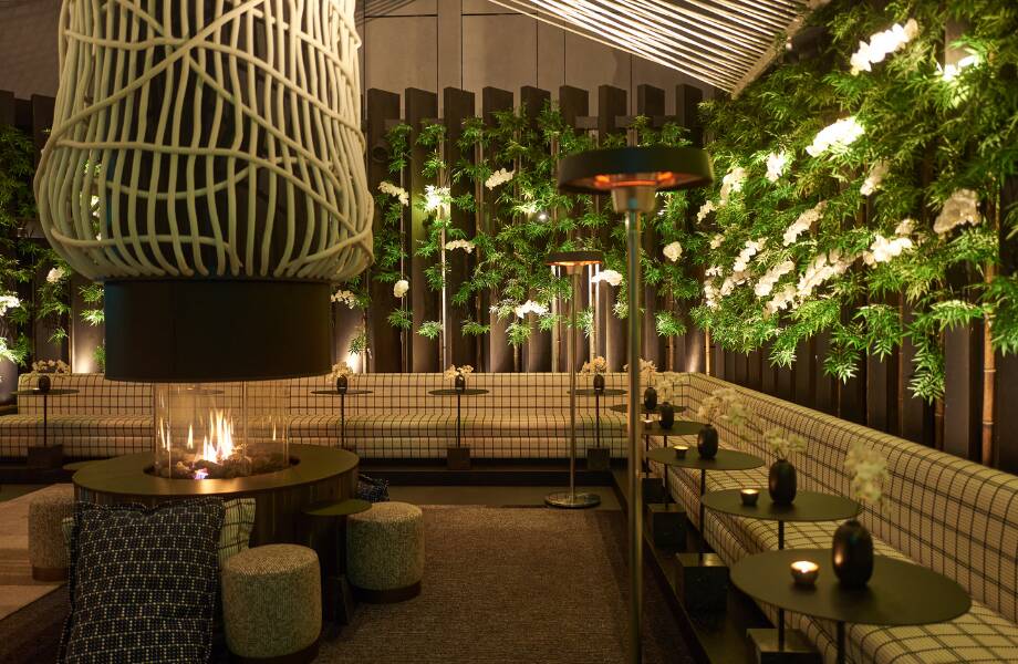 On the eighth floor of Leicester Square’s self-styled ‘super’ boutique hotel, 8 at The Londoner offers guests unequalled panoramic views of the city centre and a wide range of outstanding signature cocktails, gins and agave spirit. Try the Lychee Rosé – a blend of vodka, lychee and kumquat, sweet rosé wine and rose liqueur – or the Espresso Goma made with vodka, espresso and amari seaweed. The dramatic open-air terrace has Japanese-inspired, low seating around an open fire. High-grade small bites are available, including sea bass carpaccio with Fuji apple and Grade A5 wagyu beef tataki with black truffle ponzu. Pair these with a glass of sake for the perfect izakaya-reminiscent experience.