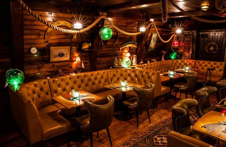 Before finding a permanent home in the cozy second-floor alcove above Gage & Tollner restaurant in Brooklyn, Sunken Harbor Club began as a pop-up series at Red Hook bar Fort Defiance. The wood-clad nook, made to look like the inside of a pirate ship, is decked out with a dizzying array of design details that help deliver on the promise of immersive escapism, including antique Japanese fishing floats, hemp mooring lines, and taxidermied fish. Rum is the star of the backbar, with over 50 bottles available to pour at any given time; the Commodore's Collection features rare offerings that will appeal to the most discerning rum aficionados. Cocktail-wise, the menu is divided by adventure: lightweight and refreshing drinks from the In the Shallows section, followed by more potent options in The Abyss, and extra-adventurous options in The Twilight Zone. For non-tipplers, a small selection of alcohol-free options are available. Walk-ins only.