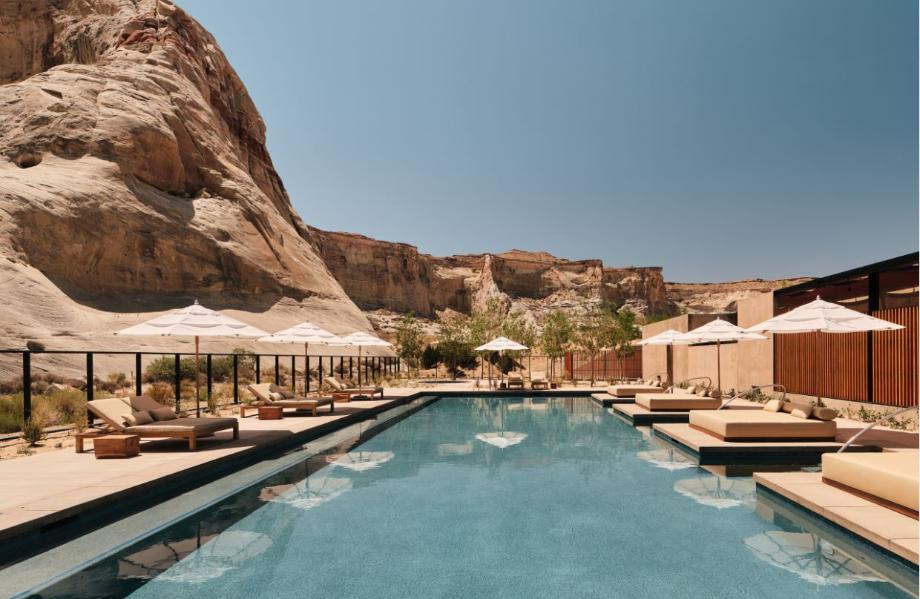 Amangiri is one of the United States’ most iconic hotels. While a steady stream of celebrity sightings and Aman’s legendary service bolster the reputation, the true star is natural splendour. Remotely located in the red rock desert, outside of Lake Powell, the exclusive resort offers a fully immersive experience. The brainchild of architects Marwan Al Sayed, Wendell Burnette and Rick Joy, large but minimalist pavilions hug the sandstone-strewn landscape evoking Donald Judd’s revered Concrete Blocks. (But, given Aman’s obsessive commitment to local sourcing, the concrete here is mixed with local sand.) Uninterrupted floorplates and massive windows ensure that the scenery is always the focus. The pool is built around a towering, prehistoric rock formation and the white Entrada sandstone, found on the floors and furniture of the 34 suites and villas, matches the surrounding slot canyons. Being far removed from civilization, guests place their itineraries in the hands of the resort’s expert team. Activities include hikes, horseback riding, UTV rides and even air tours over the 900-acre campus and adjacent national parks. Onsite, there is an excellent spa as well as inclusive food options including an onsite restaurant, in-room dining and picnic hampers.