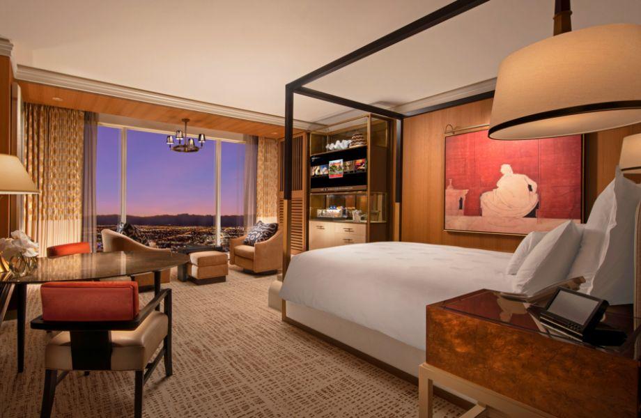 The Wynn delivers some refined elegance to the the kaleidoscope of lights and attractions that is the Las Vegas Strip. The 215-acre complex is shielded from the street by an artificial landscape comprised of a 140 foot mountain, cascading waterfalls and even a lake. The 2716 rooms are carefully distributed throughout the property to allow guests a more intimate experience. The post-modern rooms are prized for their large size, floor-to-ceiling-windows and upscale amenities. Notably, The Wynn boasts custom linens with the highest thread counts in Vegas and there's plenty of tech, including televisions in the marble bathrooms. If guests desire something even larger than the room’s spacious tubs, several pools and hot tubs dot the grounds along with two world class spas. Dozens of dining options include Manhattan’s Cipriani and sushi stalwart Mizumi. Two clubs and eight bars - not including outlets at the Wynn’s 18 hole golf course - keep guests hydrated. Winners at the 110,000 sq ft casino have plenty of opportunity to indulge. Shopping is superlative with options including a duplex Hermes, a Gucci Garden and two Chanel stores. Plus you can take in a show at the pair of theatres onsite.