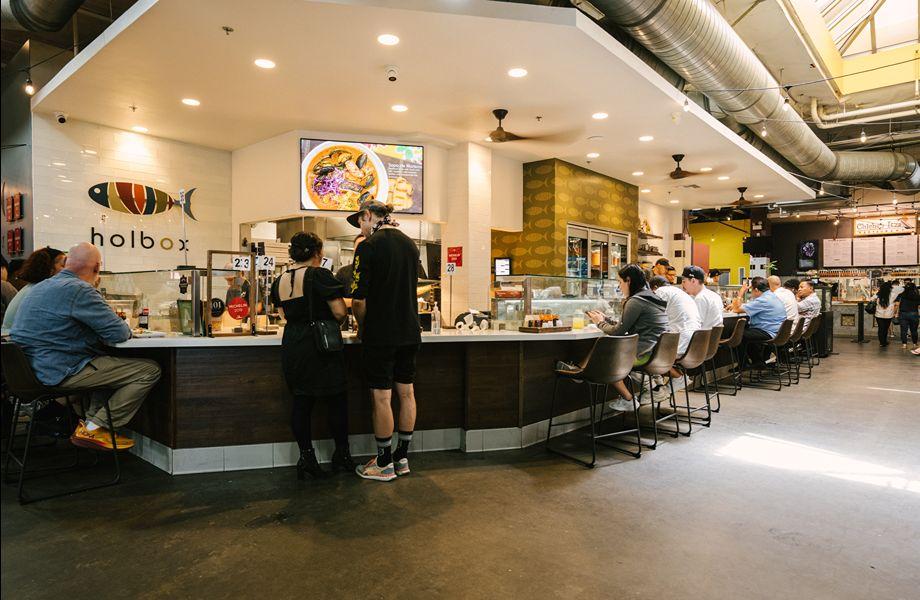 Set within the bustling cultural food hall Mercado La Paloma, Holbox marries quality seafood with a relaxed, communal approach to dining. A tribute to Mexico's coastal flavours, the restaurant is anchored by a lively seafood counter displaying raw oysters, freshly plated ceviches and the catch of the day. The vibe is warm and approachable, with shared tables, relaxed counter service and a takeaway menu running from Tuesday to Friday. Tacos, tostadas, ceviches and aguachiles are made with responsibly sourced seafood – think scallops in a house-made tomato cocktail sauce or briny sea urchin served in its spiky shell. Maine lobster goes straight from the tank to the wood‑fired grill before landing beside heirloom corn tortillas from a specialty tortilleria next door. For a treat, visit on a Wednesday or Thursday for the viral eight‑course tasting menu. Book ahead – tickets often sell out.
