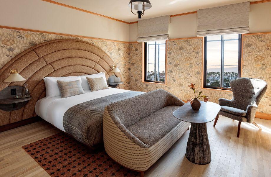 The Santa Monica Proper Hotel blends a 1928 Spanish Colonial Revival building with a modern counterpart, linked by a striking suspended bridge. Just steps from the beach, restaurants, boutiques and the farmer’s market, it’s in prime position for exploring the area. Interior designer Kelly Wearstler took inspiration from the city's history to create Surya Spa, which is a collaboration with world renowned doctor and herbalist Martha Sofferls and a natural colour palette that let the unique, minimal details shine. Art installations from local artists remind guests of the creative spirit of the region. The perfect place to escape from the bustle of the city and indulge in a little relaxation, each room is decorated with comfort in mind, featuring Aesop bath products and walk-in travertine showers. The indoor-outdoor rooftop features a pool with views of the Pacific beyond, and the Surya Spa, which has partnered with doctor and herbalist Martha Soffer, offers meditation, yoga, and cleansing programmes, plus wellness retreat packages that span from three to 28 days.