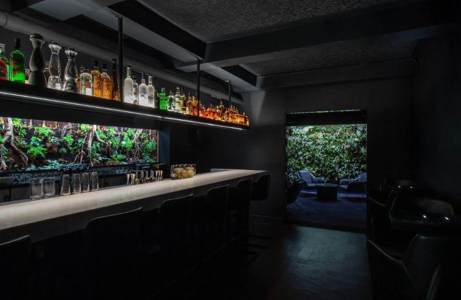 One must pass by an impressive illuminated dry aging meat locker to find the entrance to Undercote, the aptly named cocktail bar located underneath chef Simon Kim’s notorious Korean steakhouse in NYC’s Flatiron district. The cocktails are as dramatic as the black, jungle-like decor, albeit presented without too much fanfare, as principal bartender Sondre Kasin uses behind-the-scenes techniques to update familiar classics like the margarita and boulevardier. Small bites from the restaurant upstairs are worth the price of entry – chicken nuggets with gochujang glaze, or the Steak and Eggs, a hand-cut filet mignon tartare served with caviar and milk toast, are the perfect elevated bar snacks to accompany the refreshing drinks.