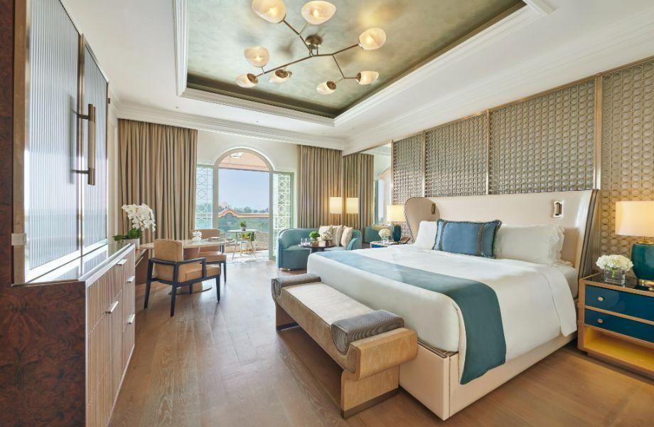 Look for the enormous domes, each clad in a mosaic of glass, and you’ll know you’re in the right place. Against a backdrop of rising metallic skyscrapers, Emirates Palace Mandarin Oriental sits low in terracotta, sprawling alongside a swathe of coastline. With its own private marina and beach club – the latter complete with elevated wooded cabanas – pools, myriad water sports and desert escapes on the cards, it brings together all the proper holiday vibes you could ask for. Modern grandeur is revealed across the bedrooms, which benefit from a typical dusting from the MO glam squad. Arabian detailing is a recurring theme – be that in the archways or etched into window panes or across headboards – but it all marries in with the contemporary, lavish styling the group’s known for: think polished marble, ebonised walnut wood and quality furnishings. A particularly noteworthy addition here is their vegan category – a mirror image of other rooms clad in vegan-friendly materials. Genius. Beyond is an indulgent spa and hammam that speaks the languid language of relaxation. And on the food front? Eleven top-notch, globetrotting eateries including an indoor-outdooer iteration Hakkasan – No 49. on MENA’s 50 Best Restaurants list 2023.