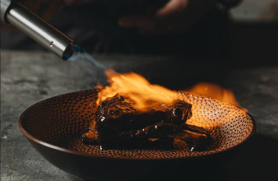 Don't be misled by 11 Woodfire's exterior. From the street it looks like another sleek Jumeirah villa, but inside it opens into a neo-industrial space built around fire. Wooden beams, exposed brick and the glow of wood-burning grills set the tone, with the open kitchen acting as the restaurant's blazing centrepiece. The cooking is precise yet primal, almost every dish is touched by smoke. The signature lamb chops, grilled to a perfect char and finished with shards of crispy fried garlic, show the kitchen at its most confident. A dedicated drinks trolley rounds out the experience with teas and soft drinks alongside stronger pours, each chosen to complement the restaurant's smoky edge.