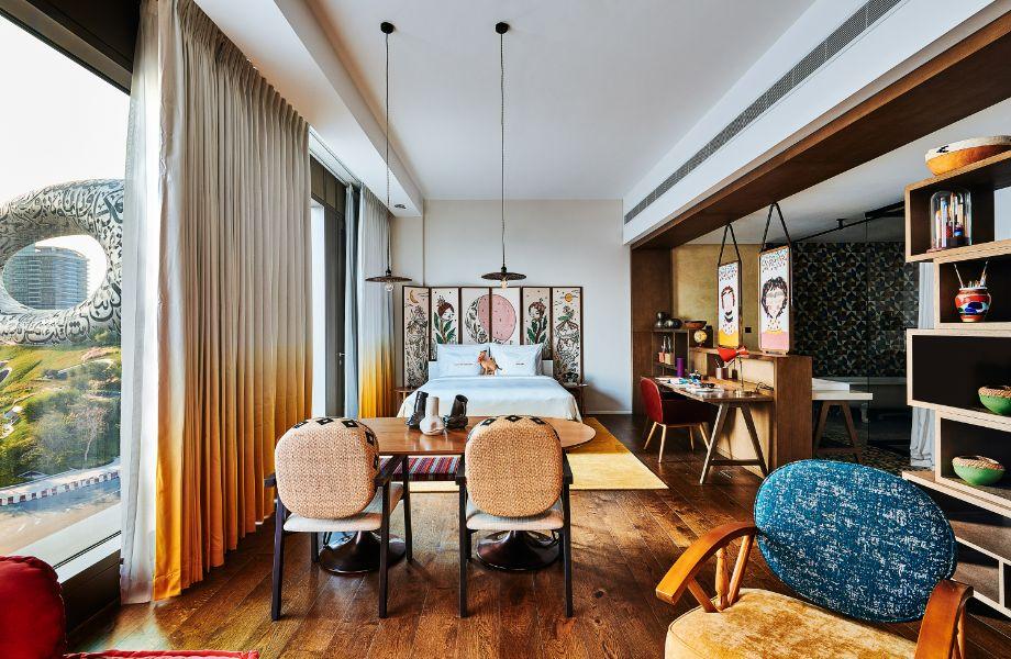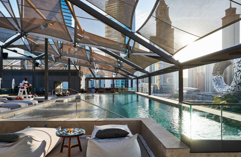 The 25hours name is celebrated in Europe for its indulgent, decadent vibe. Anchoring the new One Central district in Dubai, this 25hours is carving out a new niche in the sometimes predictable local nightlife. The Accor-Ennismore collaboration injects a dose of hipster chic without sacrificing any of the brand’s respected quality. Architecture firm Woods Bagot blends minimalism, Bedouin influences, and found objects – typewriters, antique cameras, vintage ephemera – to create a homey yet luxe experience. More throwbacks are found at the ‘Analogue Circus,’ a collection of Walkman stations, records and an adjacent library; if that’s not enough, ‘Analogue Upgrades’ allow guests to order a truck of gear including VHS machines and phonographs. Guests also gain access to pottery and podcast studios as well as a desk where one can barter personal belongings for hotel credits. Risque quips and slogans like ‘come as you are’ sprinkled about the grounds make the space feel more like Shoreditch than the UAE. Five bars and restaurants dot the space, each with a hook such as shisha, coffee or beer. The signature outlet is Monkey Bar, a satellite of the popular Berlin craft cocktail bar, offering all the tropical buzz of the original.