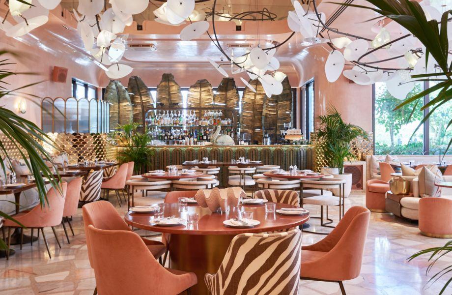 Think pink. Then think crystal-encrusted champagne bar, zebra-print cushions and a baobab-inspired ceiling installation that gently changes colour, and you will begin to picture this unapologetic restaurant from unstoppable restaurateur Natasha Sideris. These interiors are naturally a draw for Instagrammers, but the food puts in an equally strong fight for its time in the limelight. Crab and lobster croquettes served with a saffron aioli on a bed of fennel salad or its salmon Wellington in a beurre blanc could all equally be the star of the show. Cocktails inspired by Africa are exquisite: The Flamingo is a feather-light combination of egg white, raspberry and gin, while the Cheeky Monkey includes banana cordial and leaf extracts. Oh, did we mention it is located inside Jumeriah Al Nassem's turtle lagoon?