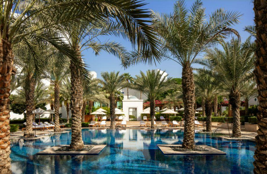 Slung across a vast campus adjacent to the Dubai Creek, the Park Hyatt Dubai entertains a diverse crowd of international visitors. The location, removed from the city’s bustling downtown, creates a serene experience. The tranquil atmosphere is helped by the architecture, a tapestry of sun-bleached buildings and tiled courtyards. The decor draws from Moroccan and Arab influences; think high arches, intricate stonework, courtyards and lots of lattices. The 223 rooms and suites all include outdoor spaces, soak tubs and rain showers in marble bathrooms, as well as Acqua di Parma toiletries. The Park Hyatt is a haven for golf lovers with exclusive access to the Dubai Creek Golf & Yacht Club and facilities like a fully lit driving range as well as reciprocal rights at the celebrated Emirates Golf Club. Aquaphiles will be delighted by the palm-studded main pool, nestled in manicured tropical gardens, and a riverside infinity pool replete with a man-made beach. After laying out, head to the six onsite courts for some racquet sports or visit the eight treatment rooms (with private gardens) at Amara, the hotel’s spa. For families, the property offers a menu of kid-friendly activities such as a play cave.