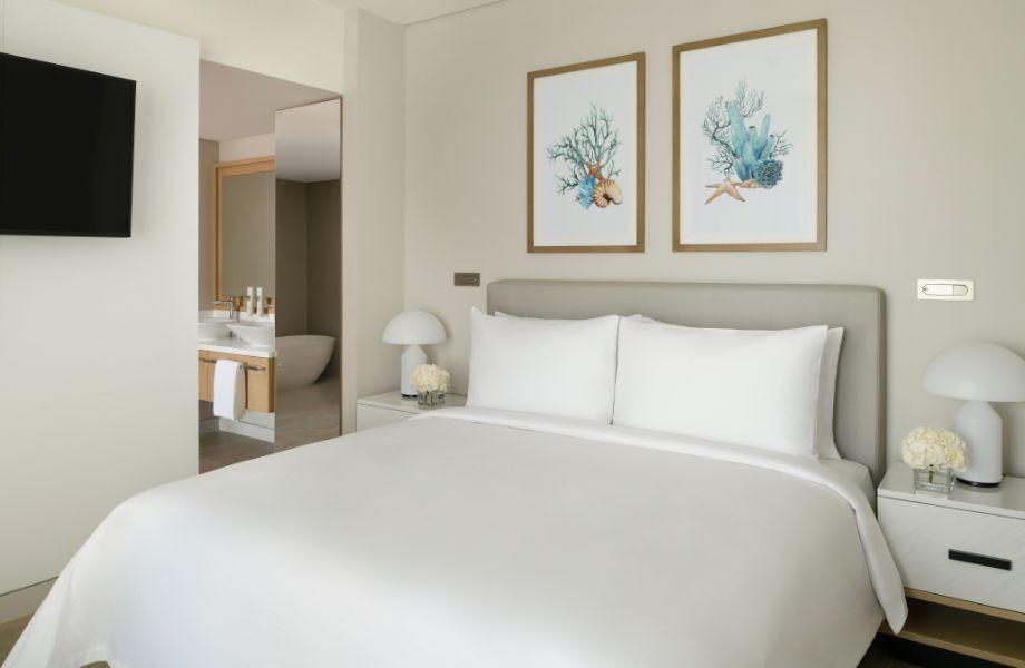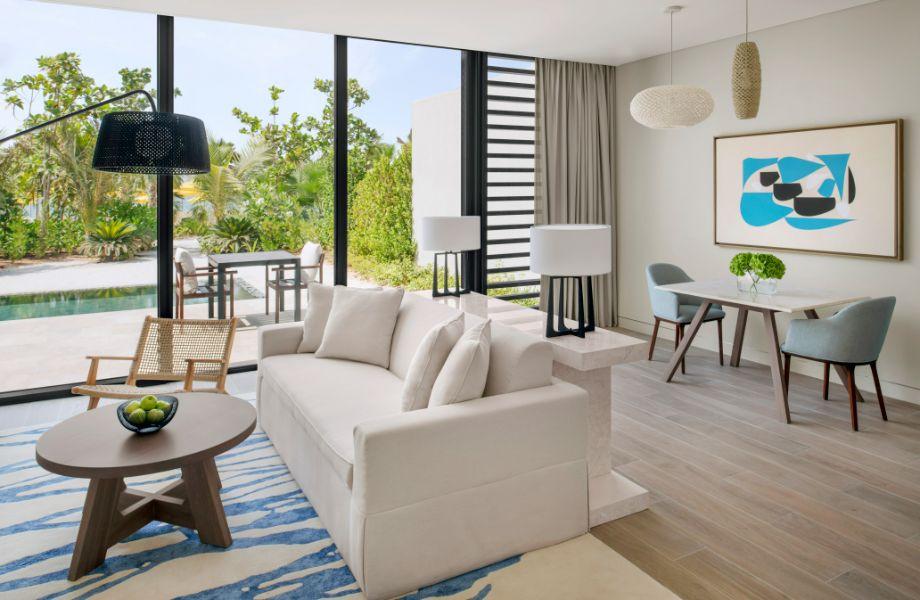 Ever since it opened in the summer of 2022, Mövenpick Resort Al Marjan Island has been on the radar of those looking for an upscale family getaway. The man-made Maran Island, which comprises four coral-shaped islands, is set against an Arabian Peninsula backdrop, framed by the Yanis and Jais mountains. It’s home to 7.8km of pristine, white-sand shoreline, 300 metres of which belong to Mövenpick. The Swiss heritage brand has created a beachfront hotel with 418 guestrooms and suites; many come with plunge pools and daybeds, as well as sofa beds and interconnecting rooms to accommodate larger groups. All offer glossy en-suites with rain showers and slick service. Six restaurant and bar concepts mean there’s something to cater for every taste and age. At Boons, table activities, cooking classes and an outdoor playground are laid on for little ones. For starlit cocktails, Neo Sky Bar is the island’s only rooftop lounge, while Chocolate Hour at MÖCA Lobby Lounge will keep the sweet-toothed happy. The floating water park and Starfish Adventure kids' club caters to the young; the Citrine Spa is for grown-up pampering.