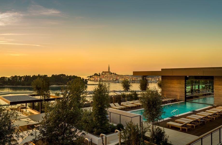 Overlooking a luxury marina by Mulini Beach, just moments from Golden Cape Forest Park, this hotel captures the best bits of Croatia’s Istrian coast. One draw is the sprawling 3,800‑square‑metre Albaro Wellness and Spa, which offers treatments using medicinal algae, pressed olives and hand‑picked local medicinal herbs soaked in Istrian liqueurs. With five restaurants to choose from, enjoy a croissant at Katarina’s Patisserie on the terrace before tucking into a multi‑course experience that brings together Italian and Croatian cuisine at Emanuele Scarello’s Agli Amici Rovinj. Retreat to a room designed with the Mediterranean in mind, complete with balcony overlooking manicured gardens, while some rooms come with private plunge pools and gardens.